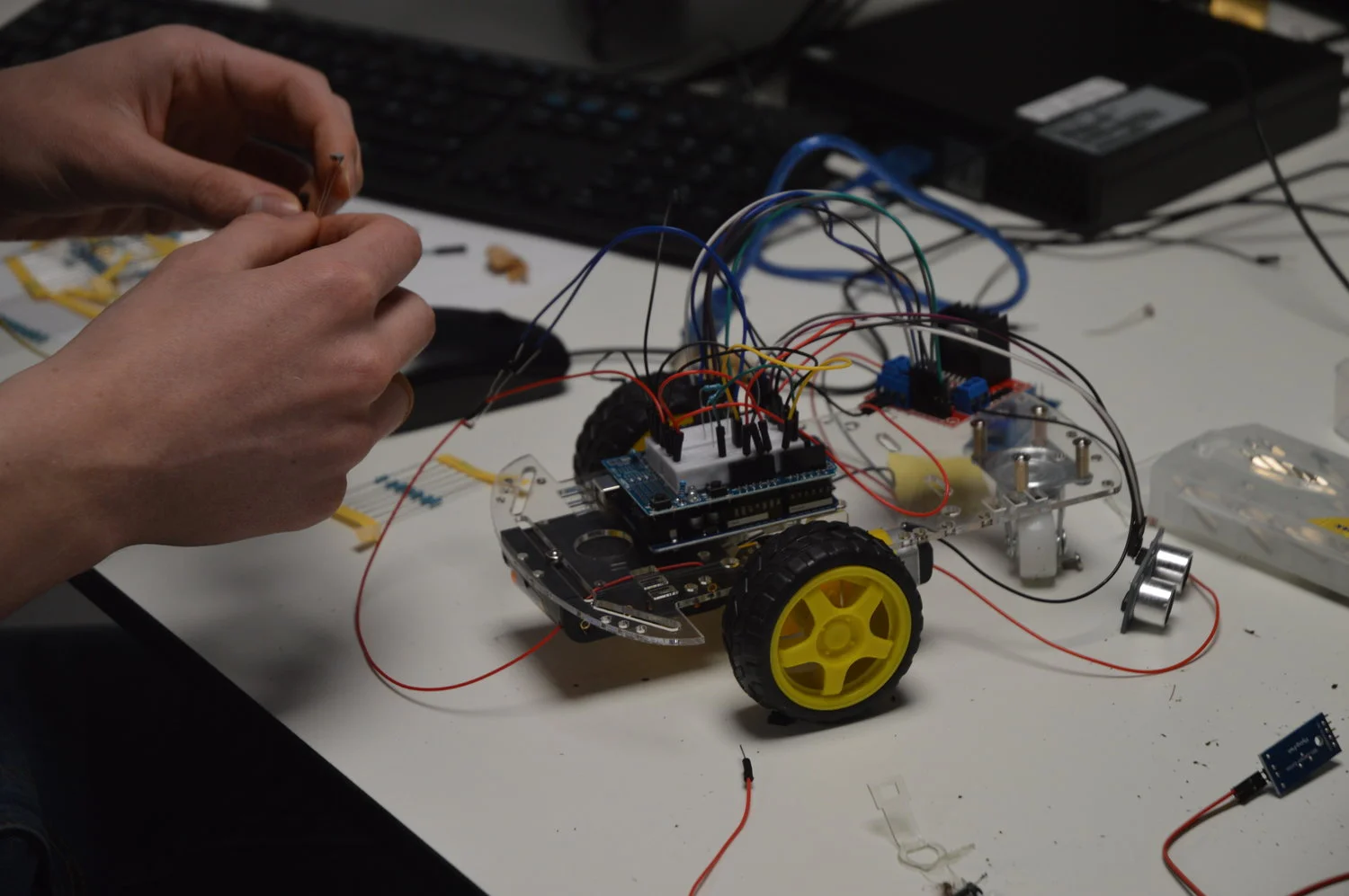 Reflecting on how the previous workshops ran, some things stayed the same, but many things were changed. The biggest change was opting to use Arduinos as the project platform. Lego MindStorms is great for quick prototyping of all sorts of devices, but ultimately unless the students are in the position to buy a ~£200 kit themselves, they wouldn’t be able to develop on what we show them in their own time. Arduinos (and Raspberry Pis, microbits, etc.) are great on this front - they’re cheap, widely available, and the students learn practical skills in developing projects with standard electronics.